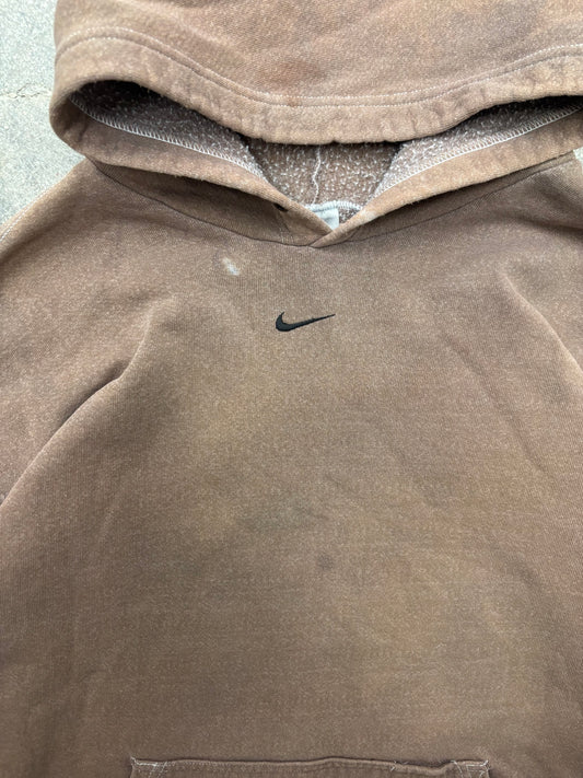 (XXL) Vintage Brown Nike Center Swoosh Hoodie Sweatshirt